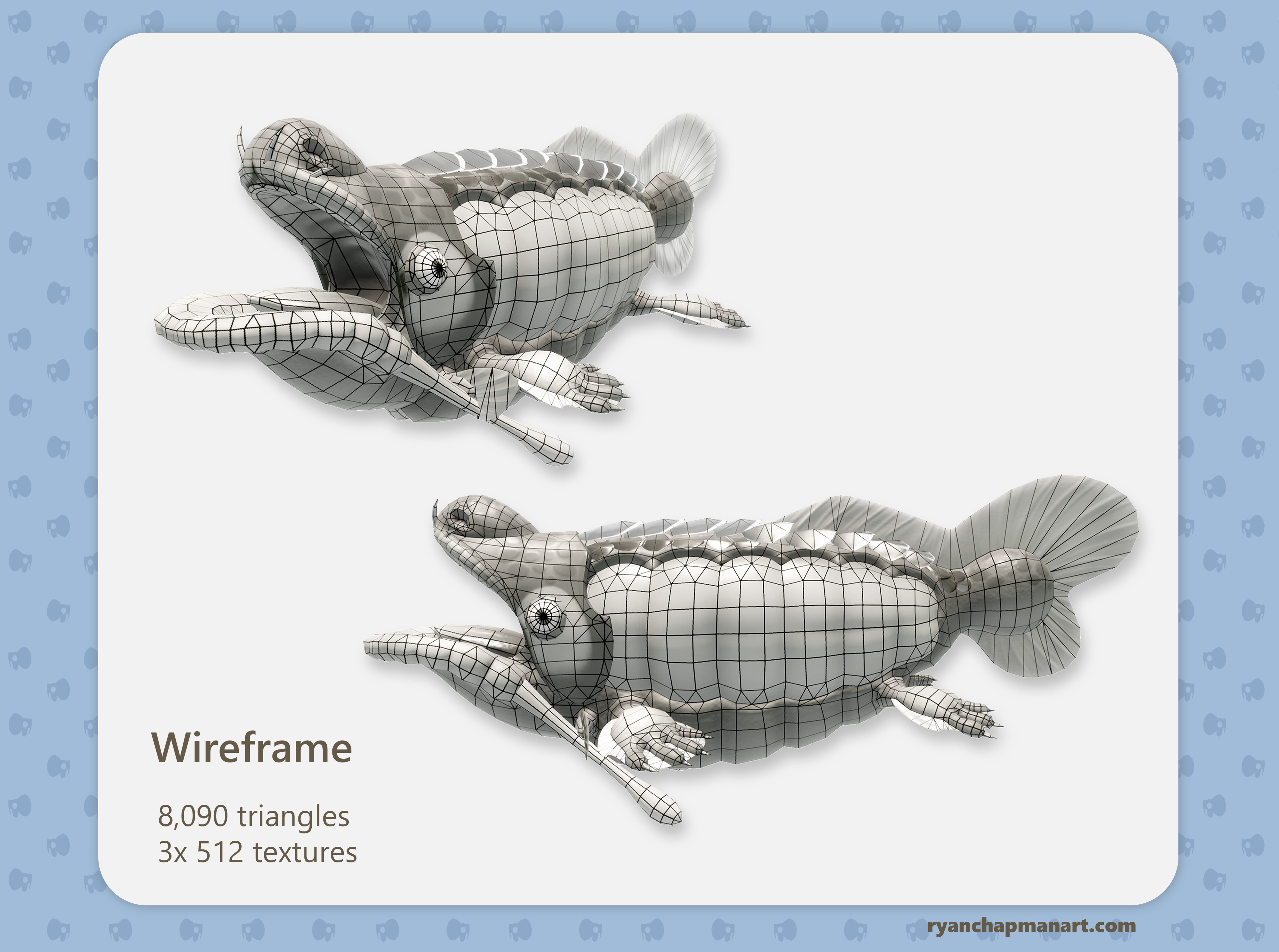 I was inspired by the latest Pikmin installment but found its water dwelling denizens to be lacking and as such took it upon myself to heavily research and attempt to replicate a game ready model that would fit in technically and aesthetically in Pikmin 4.